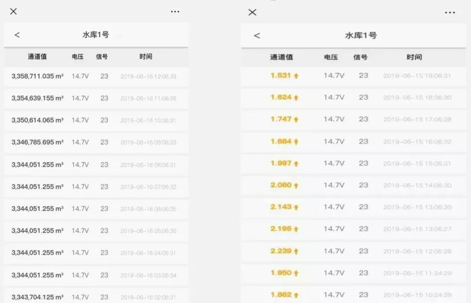 監(jiān)測(cè)點(diǎn)兼具防雷、防水等特性,蓄電池與太陽能的配合供電,可以解決各種現(xiàn)場(chǎng)供電問題。操作人員可以通過電腦或手機(jī)查詢數(shù)據(jù),實(shí)時(shí)監(jiān)測(cè)液位和流量的變化情況,手機(jī)端監(jiān)控如圖所示: